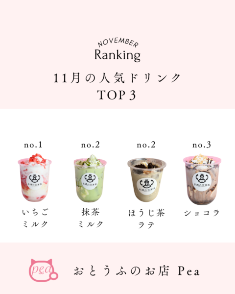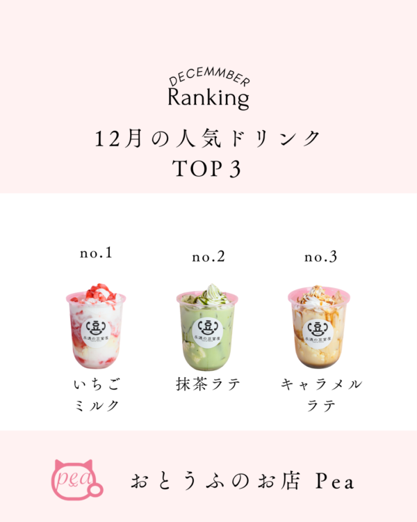 本日は、12月の「飲めちゃうTOFU」人気フレーバーランキングを発表させていただきます。