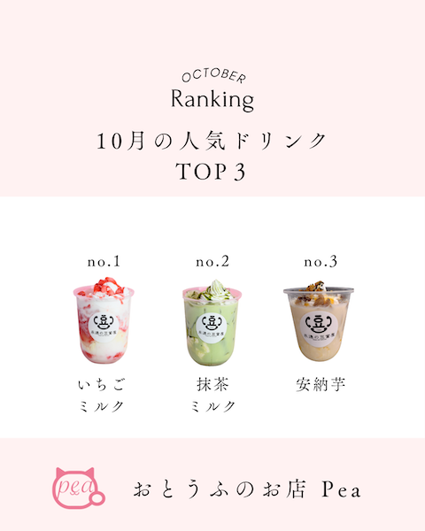 今回は、10月の「飲めちゃうTOFU」人気ランキングTOP3を発表いたします✨