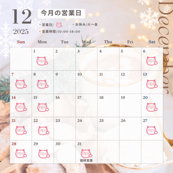 【2025年12月】営業日のお知らせ|大晦日は臨時営業いたします! | おとうふのお店 Pea