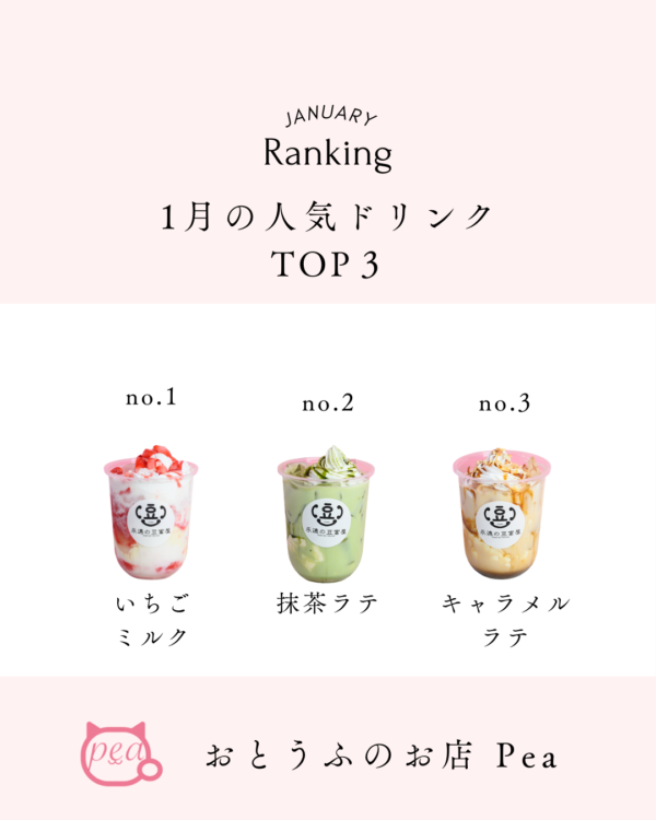 本日は、1月の「飲めちゃうTOFU」人気フレーバーランキングを発表させていただきます。