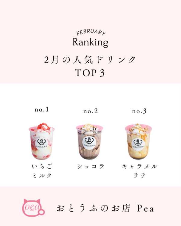 本日は、2月の「飲めちゃうTOFU」人気フレーバーランキングを発表させていただきます。